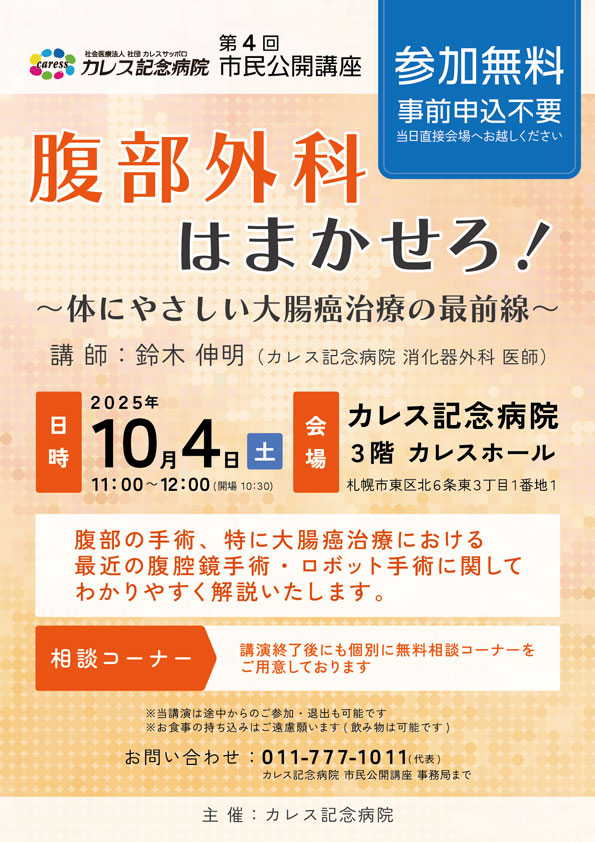 【第4回 市民公開講座】「腹部外科はまかせろ! ~体にやさしい大腸癌治療の最前線~」開催のご案内