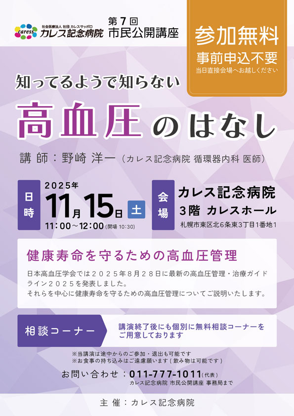 【第7回 市民公開講座】「知ってるようで知らない 高血圧のはなし」開催のご案内